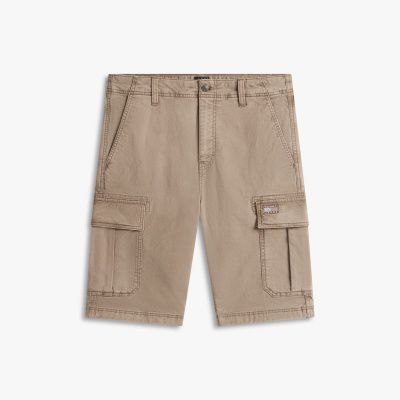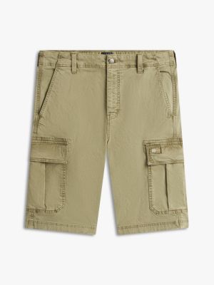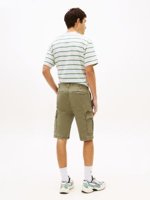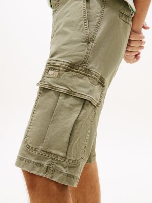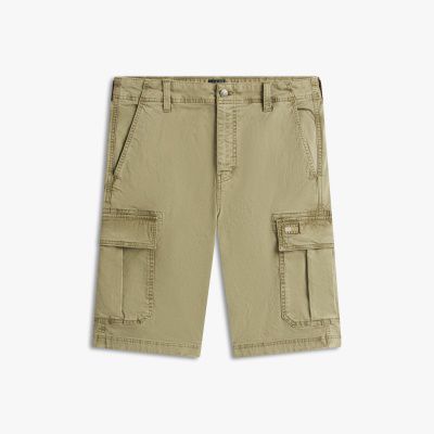 La finitura sbiadita dona un aspetto vissuto agli shorts cargo in cotone stretch, completati dalle pratiche tasche in stile da lavoro.