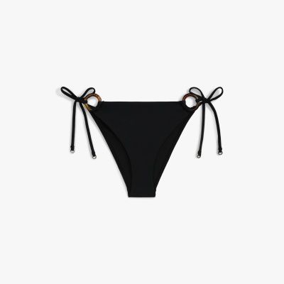 Gli slip bikini donano un tocco rétro ai tuoi look per la piscina, con i laccetti laterali da annodare e i raffinati anelli effetto tartaruga.