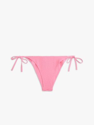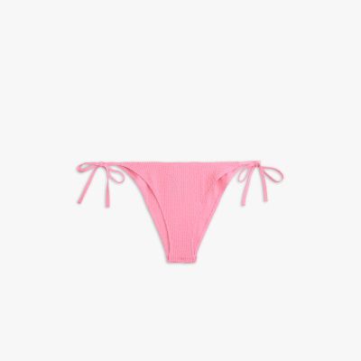 Gli slip bikini sgambati, con laccetti da annodare sui lati e finitura effetto stropicciato, ti regalano un grintoso look in stile anni '80.