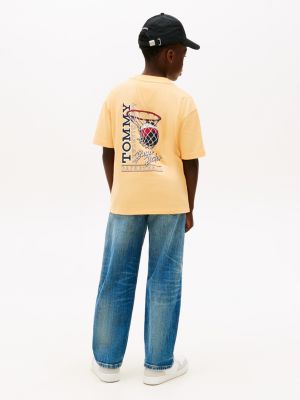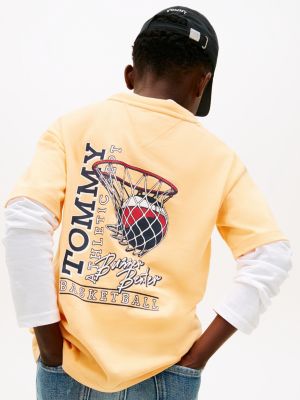 La T-shirt in jersey di puro cotone, movimentata dalla grafica stile basket sul retro, è un capo imperdibile per gli appassionati di sport.