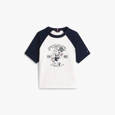 La T-shirt con maniche raglan e grafica in stile sportivo, realizzata in jersey di puro cotone, è perfetta per gli atleti in erba.