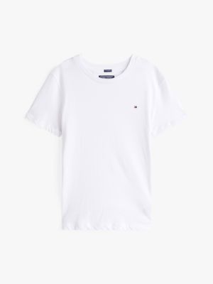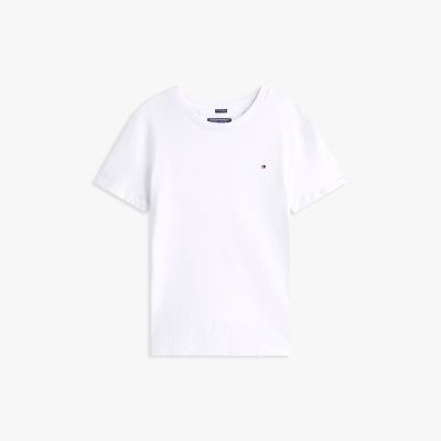 La T-shirt girocollo può essere indossata sotto una camicia oppure da sola con un paio di jeans. Il classico basic con un'invenzione è realizzato in cotone biologico sostenibile e confortevole, ed è rifinito dalla bandierina Tommy Hilfiger ricamata sul petto.