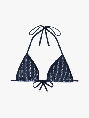 Il top bikini a triangolo con laccetti da annodare è realizzato in un accattivante tessuto stampato che attira tutti gli sguardi.