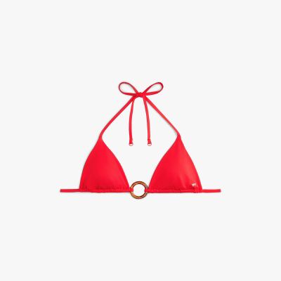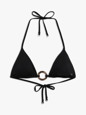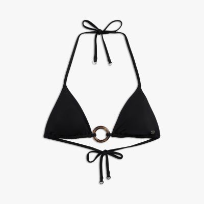 I dettagli sofisticati, come l'anello effetto tartaruga e gli elementi in metallo, donano un tocco raffinato al top bikini a triangolo.
