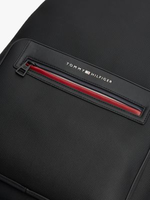 Lo zaino con custodia interna per laptop e finitura tramata, ornato dall'inconfondibile logo in metallo, fonde stile contemporaneo e funzionalità.