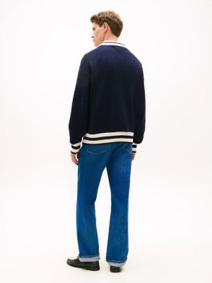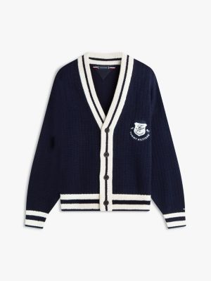 Dieser Cardigan im Cricket-Style aus reiner, mercerisierter Baumwolle punktet mit einem V-Ausschnitt und TH-Wappen-Branding im Country-Club-Look.