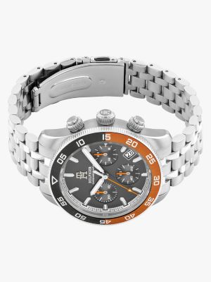 Dank Farbverlauf an der Lünette wird diese Edelstahl-Armbanduhr mit Gliederarmband zum Blickfang. Drei Totalisatoren sorgen für eine präzise Funktion als Chronograf.