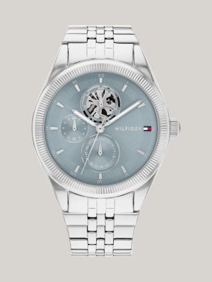 Ein sportliches Zifferblatt mit drei Totalisatoren gepaart mit einem stilvollen Gliederarmband sorgt bei dieser Edelstahluhr für elegante, aktuelle Vibes.