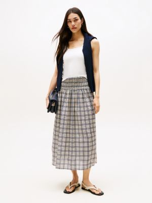 Bringe etwas Verspieltheit in deine Sommergarderobe dank diesem Maxi-Rock mit gesmoktem Taillenbund und schwungvollem Fit-and-Flare-Design.