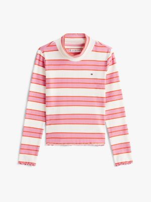 Bei diesem Relaxed Fit Top aus Baumwolle mit Stretch und Mock Neck betont die gerippte Struktur den Extra Slim Fit.