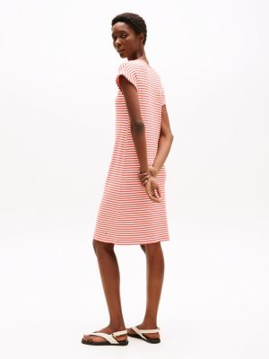 Der lässige Look dieses T-Shirt-Kleids in Midi-Länge mit Rundhalsausschnitt wird durch Krempelbündchen und gerippten Stoff unterstrichen.