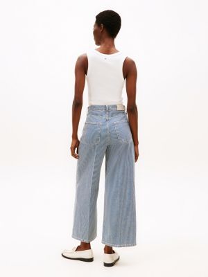 Diese Denim-Jeans mit weitem Bein, hohem Bund und maritimen Längsstreifen versprüht Riviera-Chic.