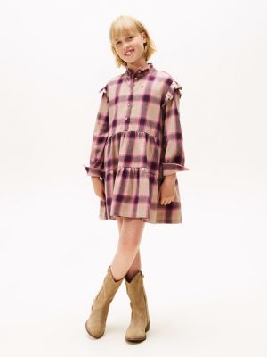 Relaxed Fit Karo-Flanell-Hemdkleid mit Rüschen