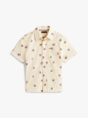 Kurzarm-Oxford-Hemd mit Streifen und Print