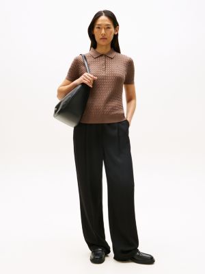 Dieser Pullover mit leichtgewichtigem Zopfstrick-Design und softem Polokragen kombiniert zeitlose Eleganz mit lässiger Ausstrahlung.