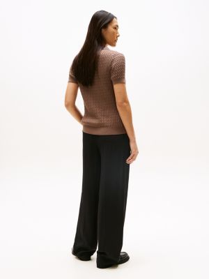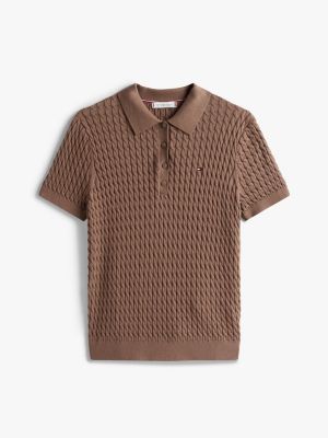 Kurzarm-Pullover im Polo-Stil mit Zopfmuster