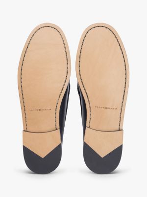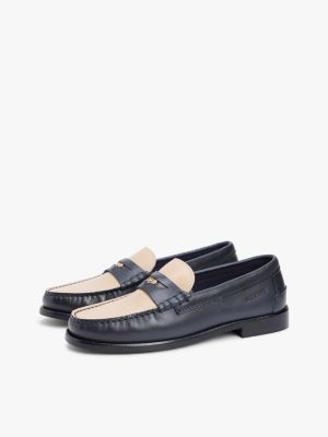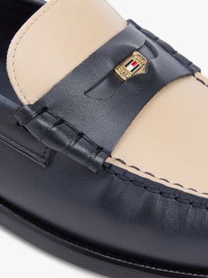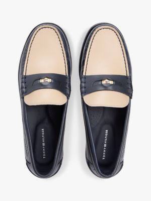 Perfektioniere deine eleganten Looks dank diesem klassischen Loafer aus glänzendem Leder, der vorne einen goldfarbenen Penny mit Branding hat.