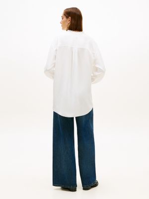 Die Spitzenbesätze im Flag-Design an dem zarten Mandarinkragen und den Manschetten verleihen diesem Oversized Fit Hemd romantische Vibes.