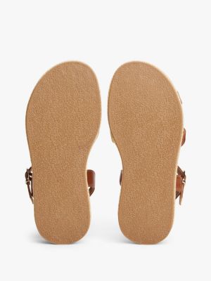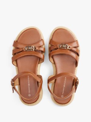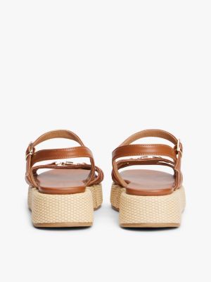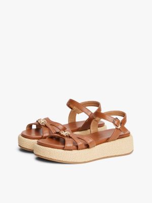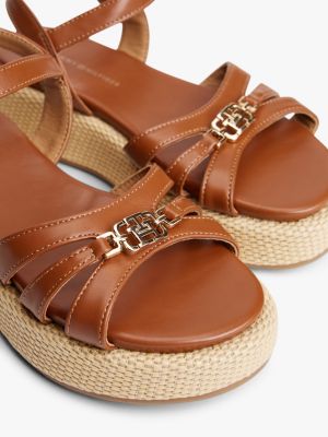 Schimmerndes Branding auf dem vorderen Riemen und die mit Jute bedeckte Zwischensohle verleihen dieser Plateau-Sandale elegante Tommy-Vibes.