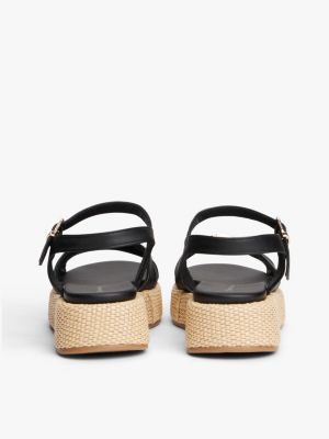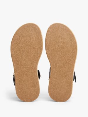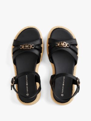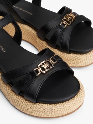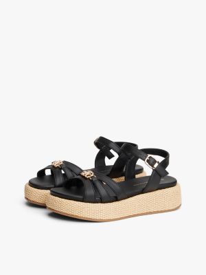 Schimmerndes Branding auf dem vorderen Riemen und die mit Jute bedeckte Zwischensohle verleihen dieser Plateau-Sandale elegante Tommy-Vibes.