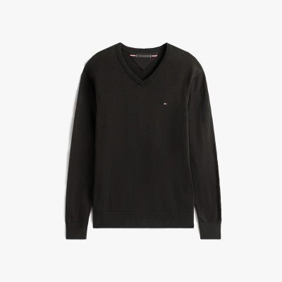 Bring durch diesen Pullover aus reiner gekämmter Baumwolle mit V-Ausschnitt und Flag-Stickerei elegantes Flair in deine Lagenlooks.