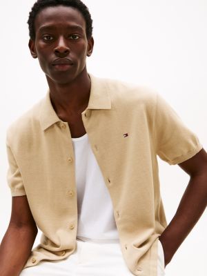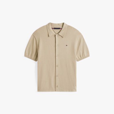 Bei diesem gestrickten Kurzarm-Overshirt mit klassischem Kragen betonen die leicht überschnittenen Schultern den lässigen Look.