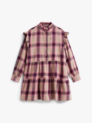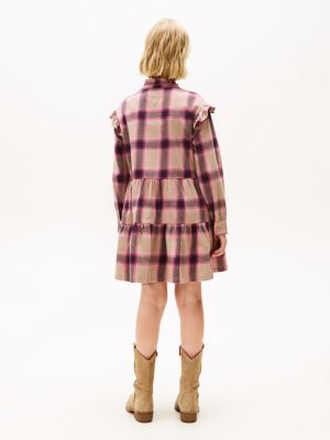 Rüschenkragen und Stufenrock sorgen bei diesem karierten Flanell-Hemdkleid in Garnfärbung für klassischen Style.