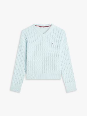 Das klassische und mit mittelschwerem Garn gestrickte Zopfmuster verleiht diesem Pullover aus reiner Baumwolle einen zeitlosen Look.