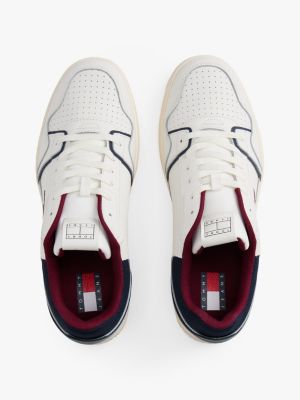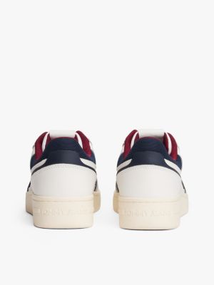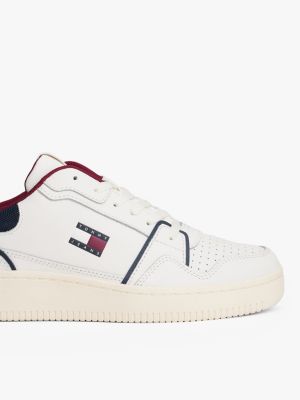 Vom klobigen, leicht rutschhemmendem Sohlendesign bis zu den Tommy-Farben: Dieser Basketball-Sneaker aus beschichtetem Leder punktet mit authentischen Retro-Details.