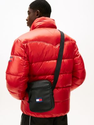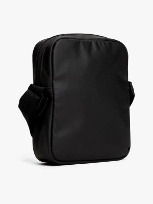 Verstaue Wertgegenstände sicher in dieser kompakten Crossbody-Reportertasche aus wasserdichtem Ripstop-Gewebe mit gummiertem Tommy-Branding.
