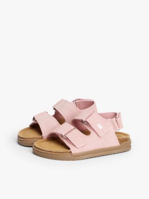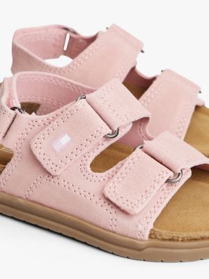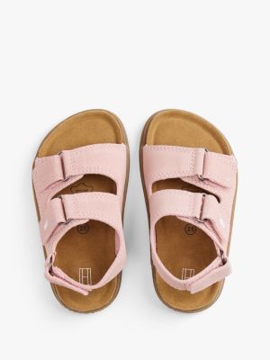 Diese Veloursleder-Sandale verleiht Warmwetter-Outfits luftige Vibes. Doppel-Riemen mit Klettverschlüssen ermöglichen ein leichtes An- und Ausziehen.
