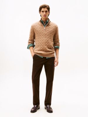 Reine Lammwolle, ein praktischer Viertel-Reißverschluss und das klassische Zopfmuster geben diesem Pullover smarte Vibes.
